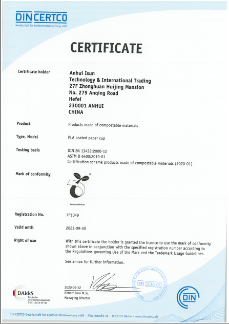 ISO/FDA/LFGB/EU/SGS/TUV/BV/SASO Standard Certified Paper Cups :