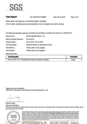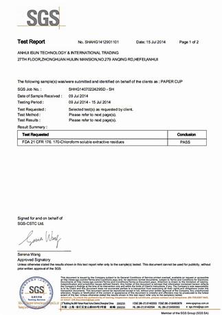ISO/FDA/LFGB/EU/SGS/TUV/BV/SASO Standard Certified Paper Cups :