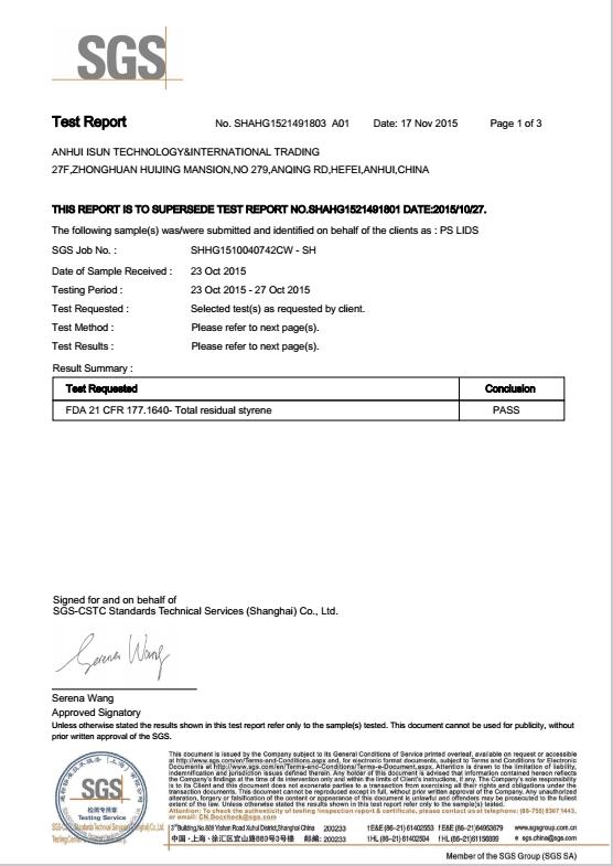 No14: Lids tested to FDA by SGS in Sept 2017