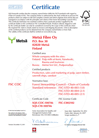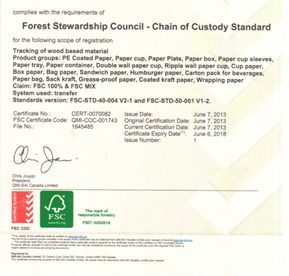 No 9: Material pulp and paper FSC certificate
