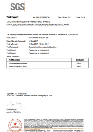 No12: Cups tested to EU by SGS in Sept 2017
