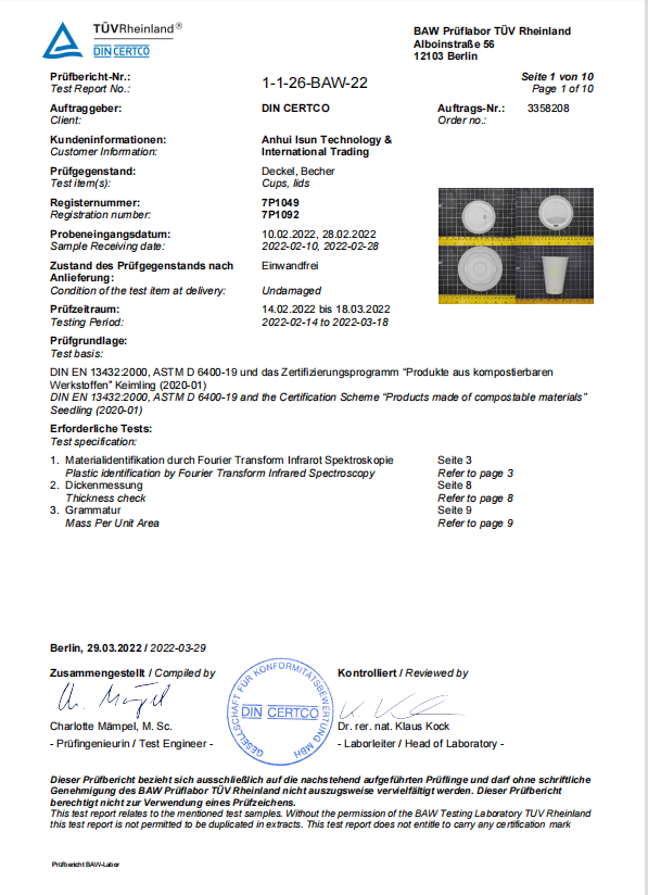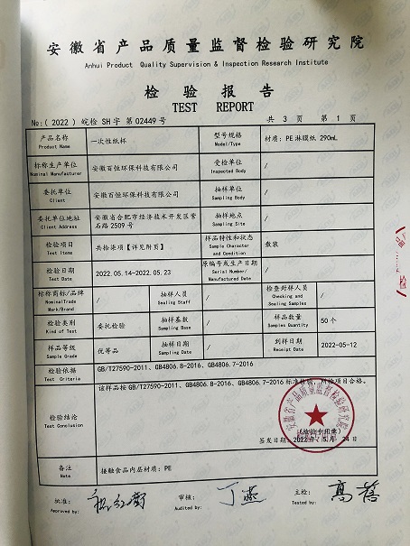 ISO/FDA/LFGB/EU/SGS/TUV/BV/SASO Standard Certified Paper Cups :